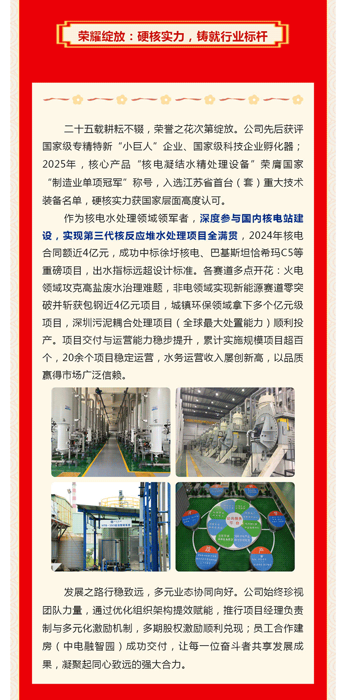 中電環(huán)保股份有限公司是南京市首家環(huán)保上市公司(股票簡稱:中電環(huán)保,股票代碼:300172),南京環(huán)保產(chǎn)業(yè)協(xié)會會長單位,國家級聯(lián)盟理事長單位,是生態(tài)環(huán)境治理服務(wù)商,主營(3+1):水務(wù)、固危廢、煙氣治理及產(chǎn)業(yè)創(chuàng)新平臺,包括:工業(yè)水處理、污水處理及水環(huán)境綜合治理;固危廢土壤、污泥餐廚垃圾處理;煙氣及VOCS治理;智慧環(huán)保;高端裝備等。